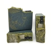 Distilled Water, Coconut Oil, Sodium Hydroxide, Castor Oil, Organic Shea Butter, Fragrance Blend, Glycerin Soap Embed, Mica, Titanium dioxide, Ultramarine Blue, Chromium Oxide Green, Iron Oxide. Wrapped in Non Toxic Recyclable Packaging.